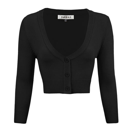 Cute Pattern Cropped Cardigan Sweater 3/4 Sleeve