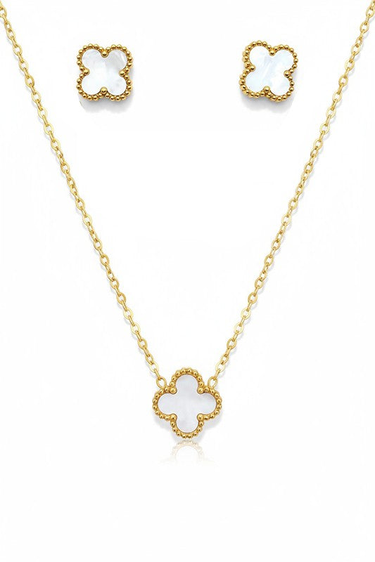 MOP Clover Pendant Necklace Set
