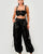 Make a bold statement in this black two-piece set, combining streetwear edge with high-fashion detail. The structured crop top features utility-style flap accents and thick adjustable straps for a daring look. Paired with relaxed cargo pants designed with multiple pocket details and elastic cuffs, this set delivers both function and style.