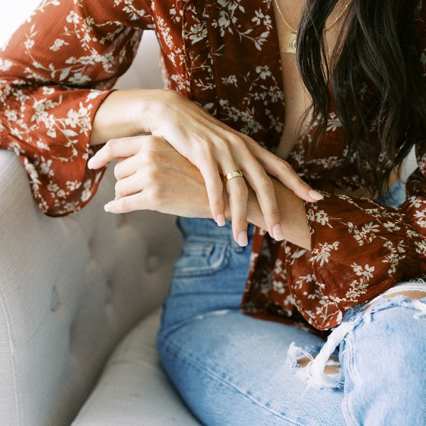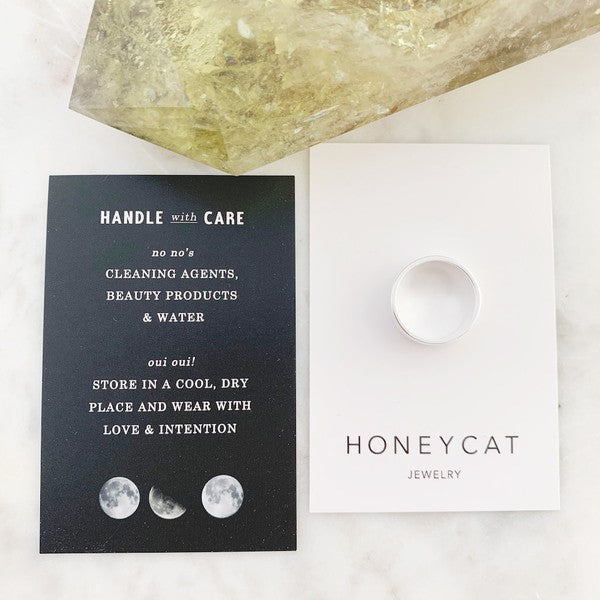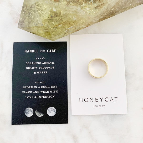 Our materials make for an amazing, high quality, seamless, jewelry piece with longevity. Our rings are plated with 24k gold, 18k rose gold, or sterling silver and finished with a protective coating. A little secret we'll keep between us: it looks way more than it costs.