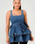 This denim peplum top is designed with a square neckline and fitted bodice for a flattering shape. The layered ruffle tiers create a playful silhouette while the side 3D floral appliques add a feminine touch. Made in a medium wash denim that is versatile and easy to style. Perfect to pair with leggings, jeans, or skirts for both casual and elevated looks.