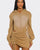 Bottom: A ruched drawstring mini skirt with adjustable side gathering and a flattering, body-hugging fit that creates curves on command.
