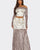 Make a bold statement with this two-piece ensemble featuring a captivating blend of textures and styles. The set includes an off-shoulder velvet long-sleeve crop top with a structured denim-inspired bustier overlay. The top is paired with a high-waisted distressed denim mini-skirt layered over a flowing velvet maxi skirt, creating a unique combination of edgy and elegant.
